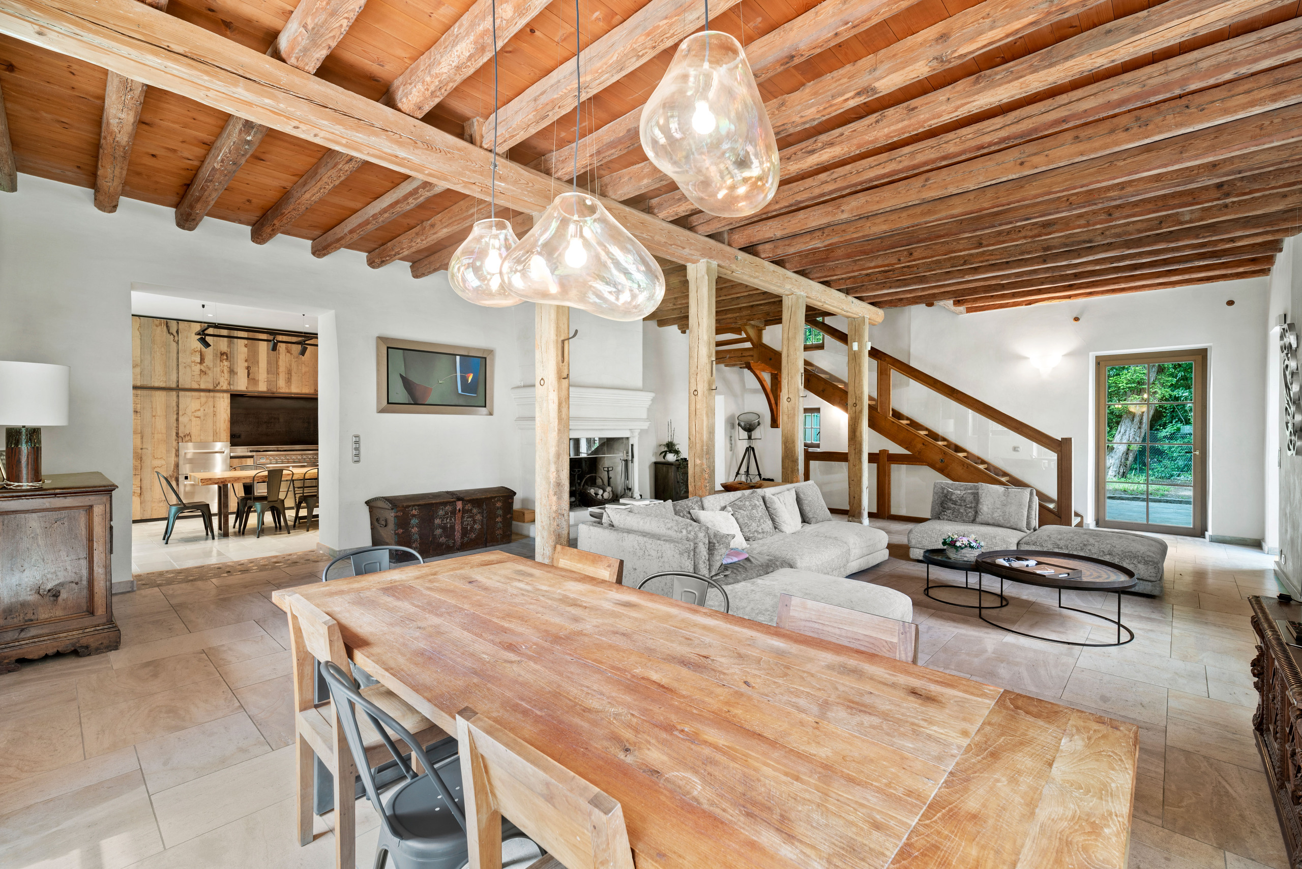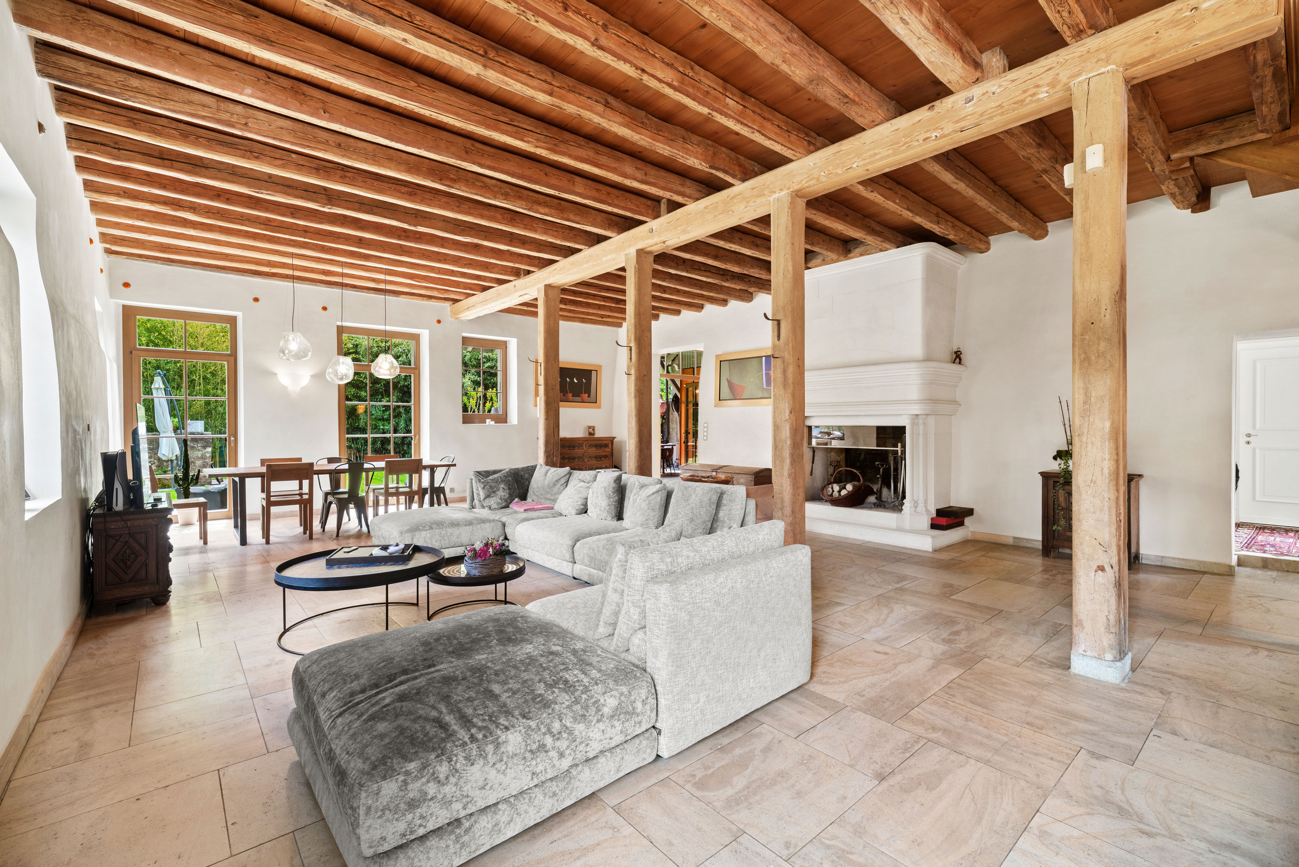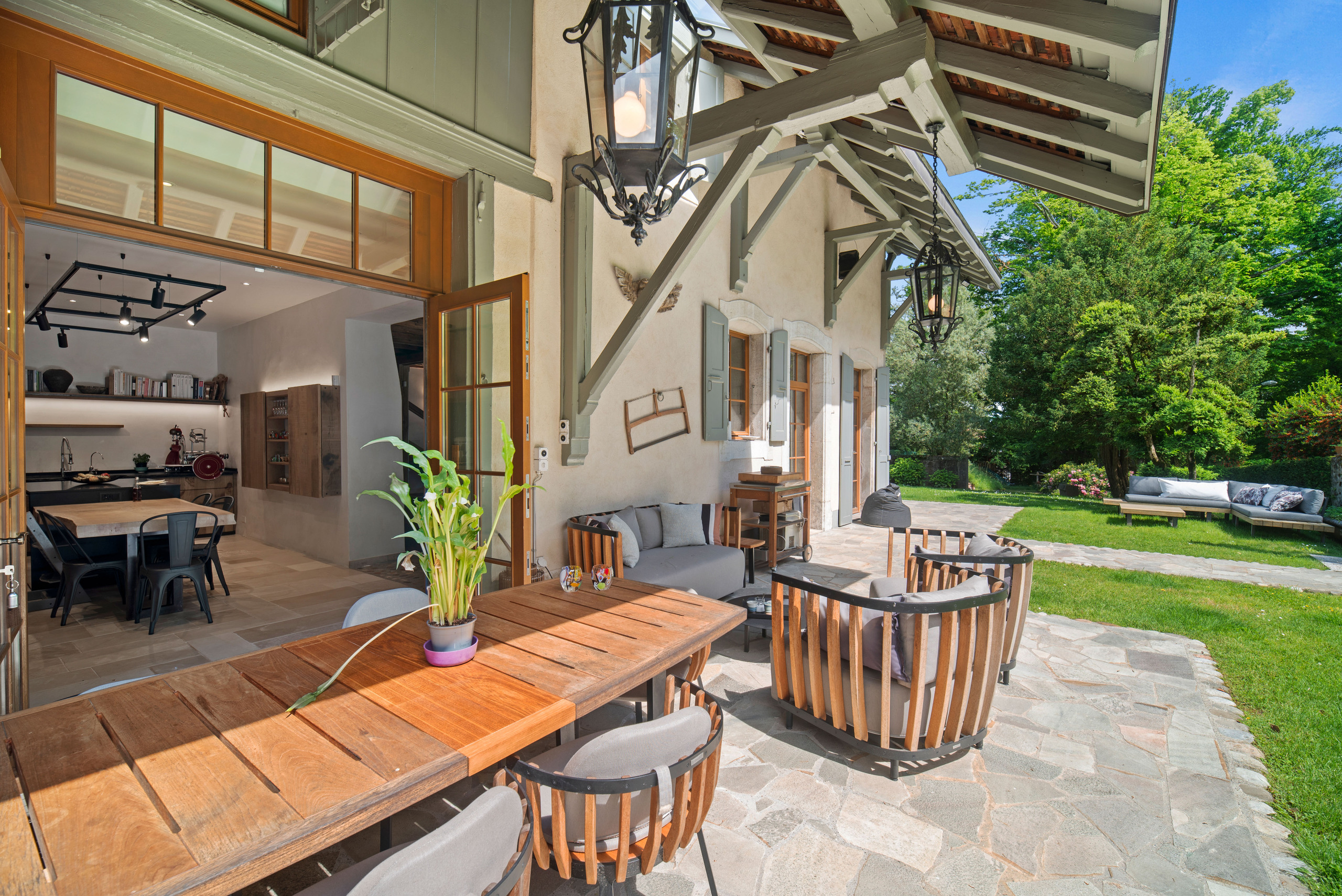 This beautiful property is located in the south of the commune of Genthod, close to transport, the airport, international schools and the lake. These old stables dating from the 18th century were renovated with great taste in 2016 and transformed into an ideal property for a family in a green environment in Geneva. The property offers all the comfort and modern technology in the very warm setting of a rural building (heat pump, solar panels, semi-professional kitchen, high-end security system, etc.) It offers a living area of approximately 350 sqm with 4 bedrooms and 3 bathrooms. Two of the bedrooms have a view onto the lake. Open to the outside, the living rooms are characterized by generous volumes with very high ceilings and lots of character (exposed beams, fireplace). The basement is fitted out with a laundry room, a wine cellar and a cinema room. The 2