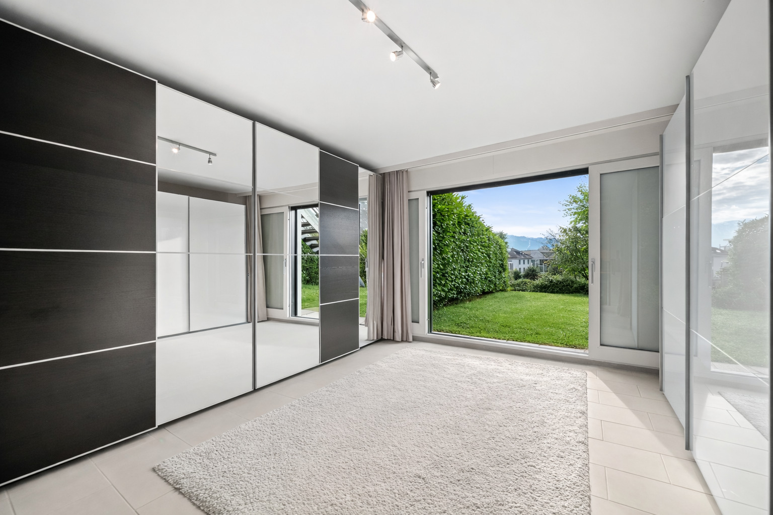The sleeping area is located on the garden level and comprises two bedrooms, each with its own en-suite bathroom. The particularly generous master suite has its own private terrace.