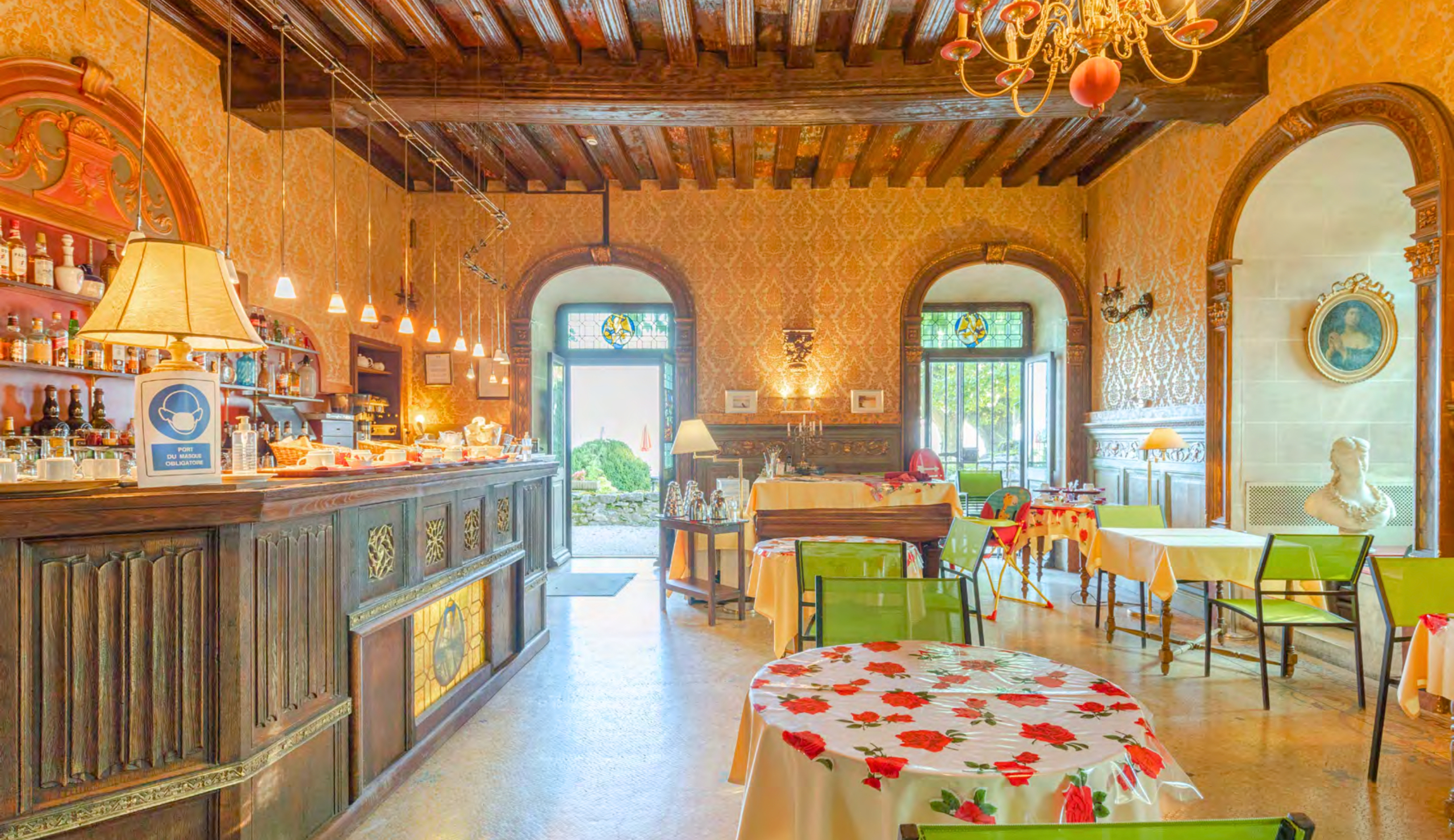 terrace with seating for 120 and a swimming pool. Fifteen parking spaces and a cellar complete this exceptional property.