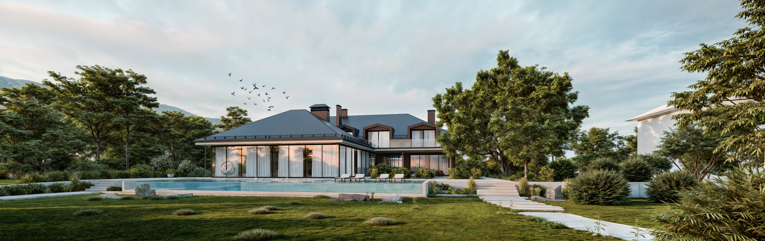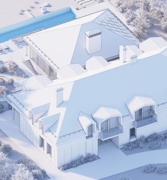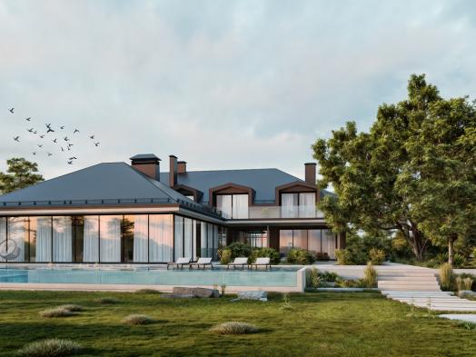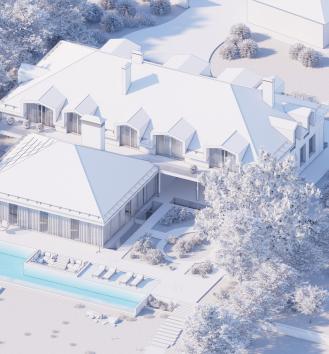 The lower ground floor will be dedicated to the relaxation and spa area with an indoor pool, a shower room and a bar. The access will allow to take full advantage of the garden and the access to the lake.