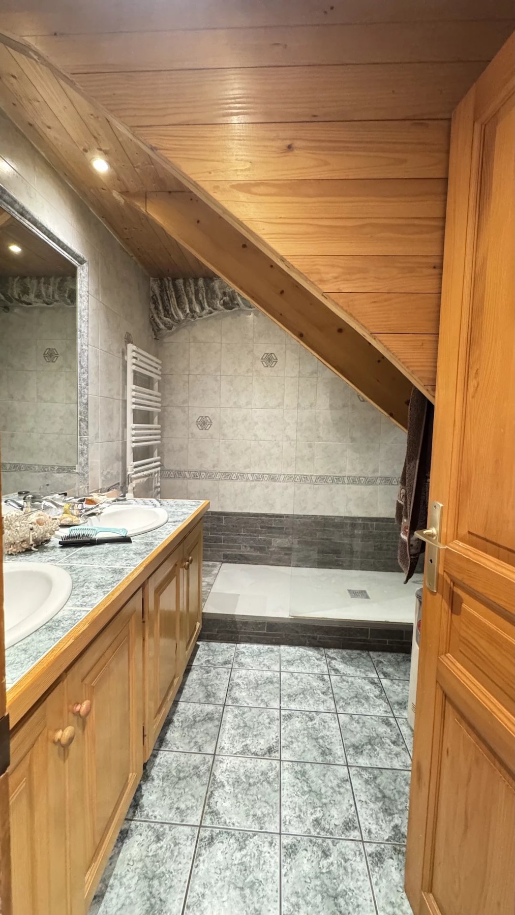 On the garden level, two bedrooms, a shower room, a laundry room and an independent toilet.