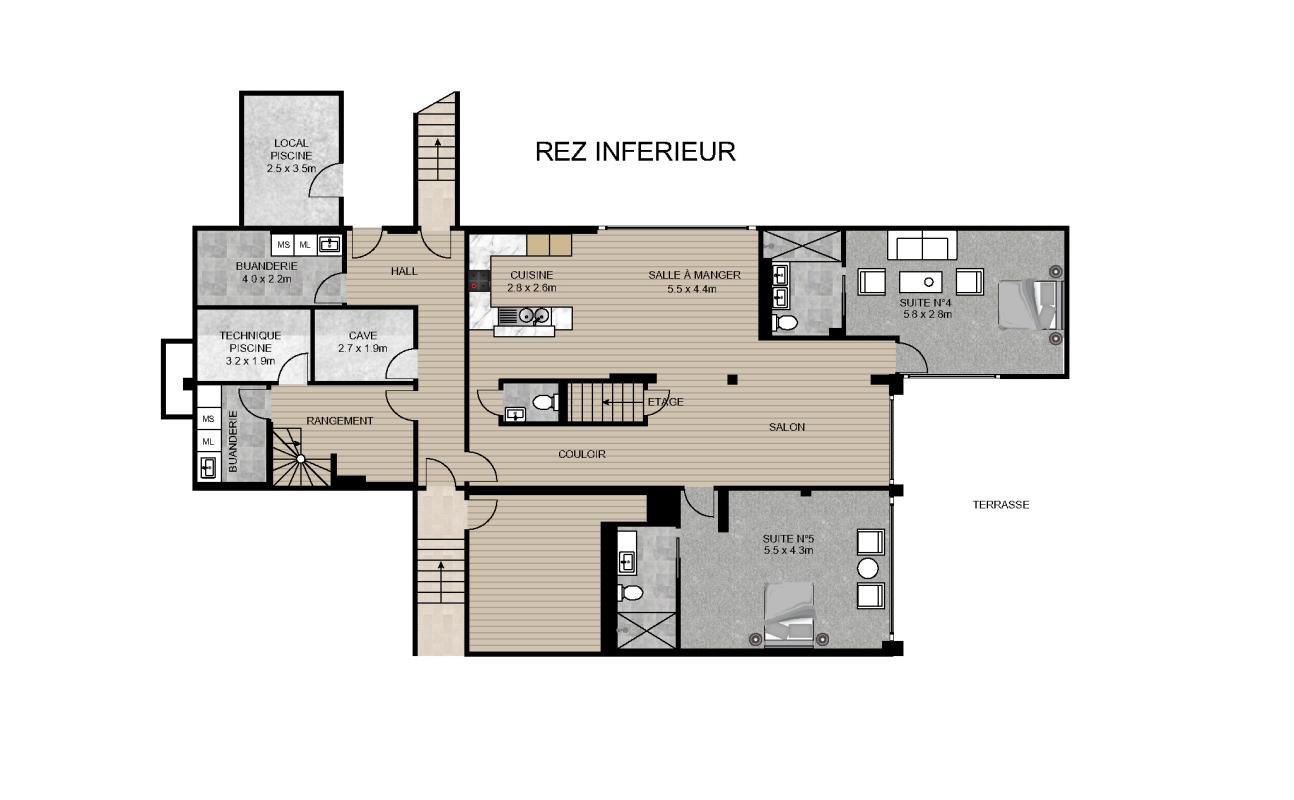 Prix sur demande Unique: loft en duplex de 338, terrasse, parc 3ha, proche de Carou 4 Chambres 3 SDB 338 sqm 1256 GE Détails