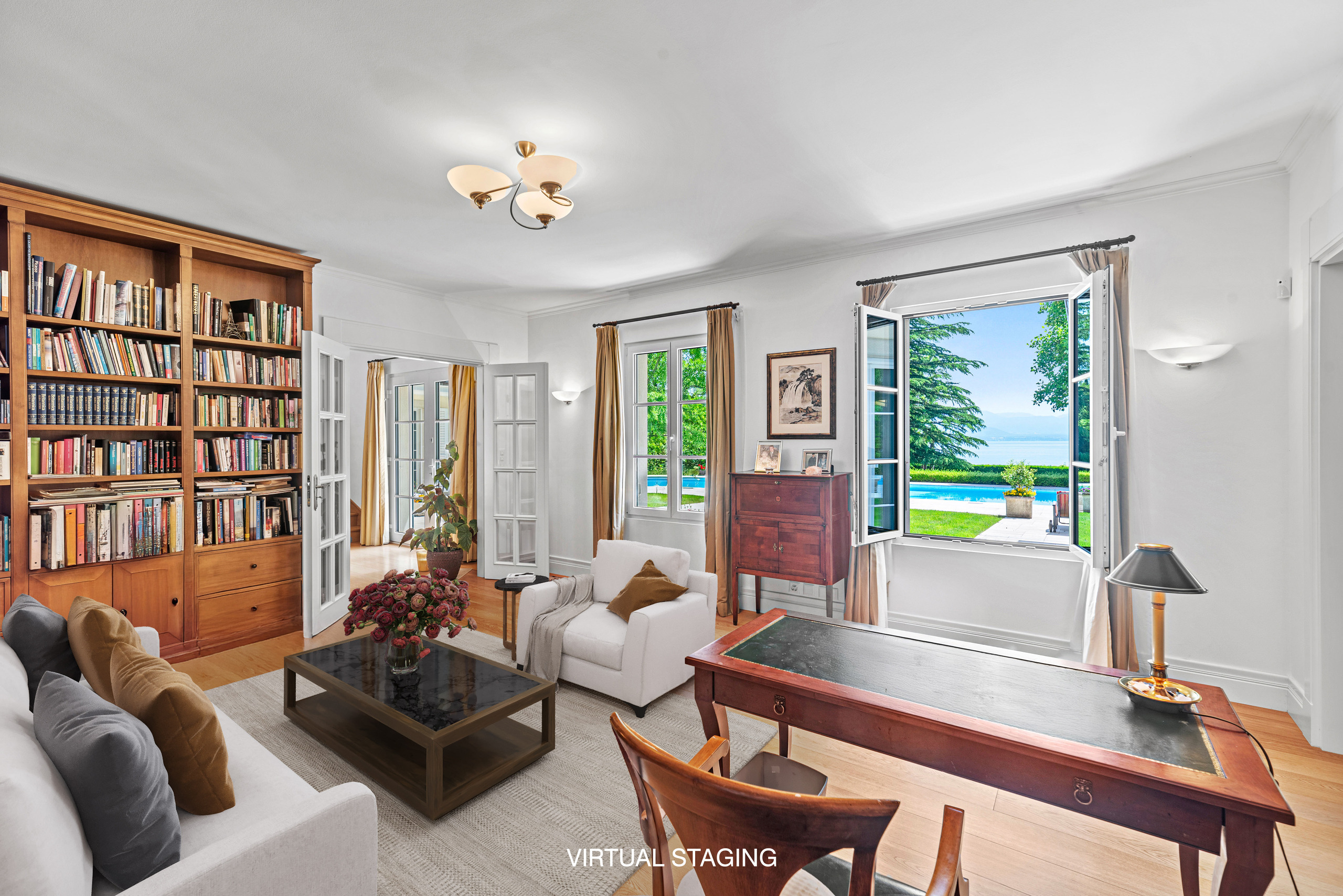 Cette superbe propriété située sur la Côte entre Lausanne et Genève se cache dans un écrin de verdure à l'écart de toutes nuisances. Sur une magnifique parcelle « pieds dans l’eau » de près de 5000m2, elle offre un cadre de vie très privatif et calme tout en étant proche des commodités, des transports et axes autoroutiers ainsi que des écoles internationales les plus prestigieuses. Edifiée en 1972, la propriété a été entièrement rénovée et agrandie en 2014 et allie des volumes spacieux, une distribution des pièces fluide et cohérente. L’ensemble architectural est particulièrement élégant, classique comprenant des matériaux hauts de gamme. Sa surface habitable de plus de 500m2 comprend également une surface utile de plus de 200m2. Les cinq chambres à coucher sont très spacieuses et lumineuses. La propriété est agrémentée d’une piscine carrelée et chauffée de 15x6m dont l'orientation plein sud permet un ensoleillement optimal. Un