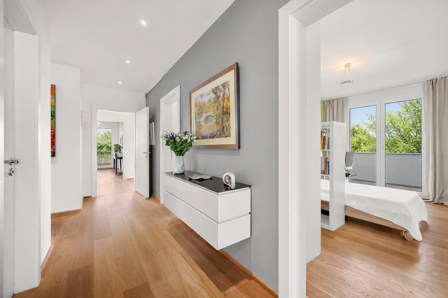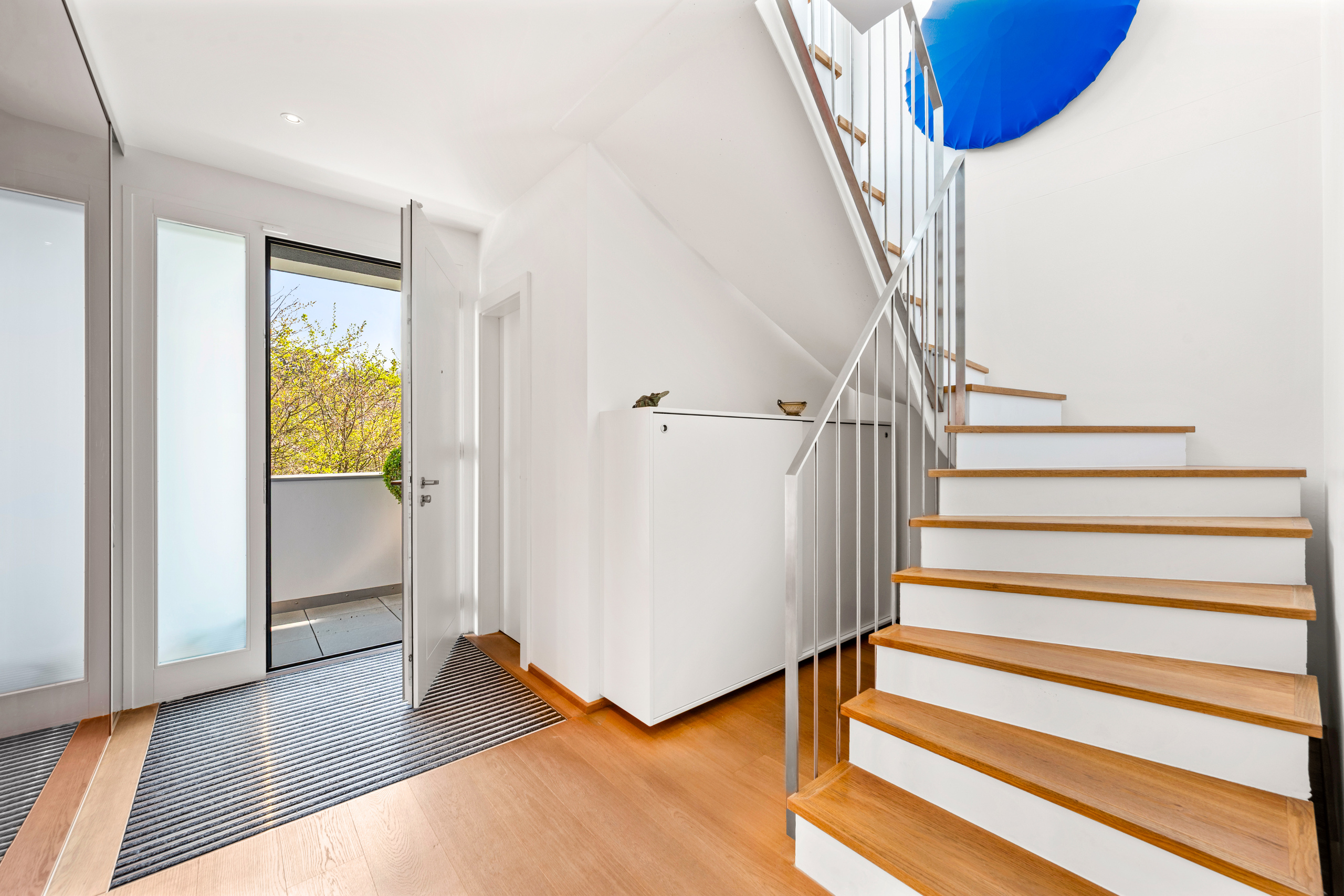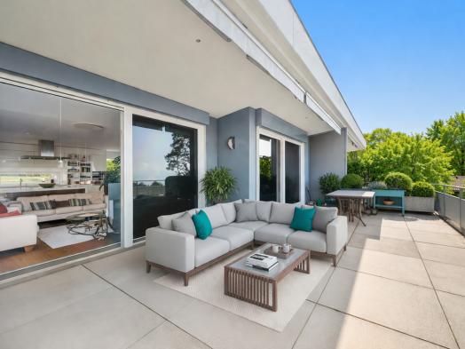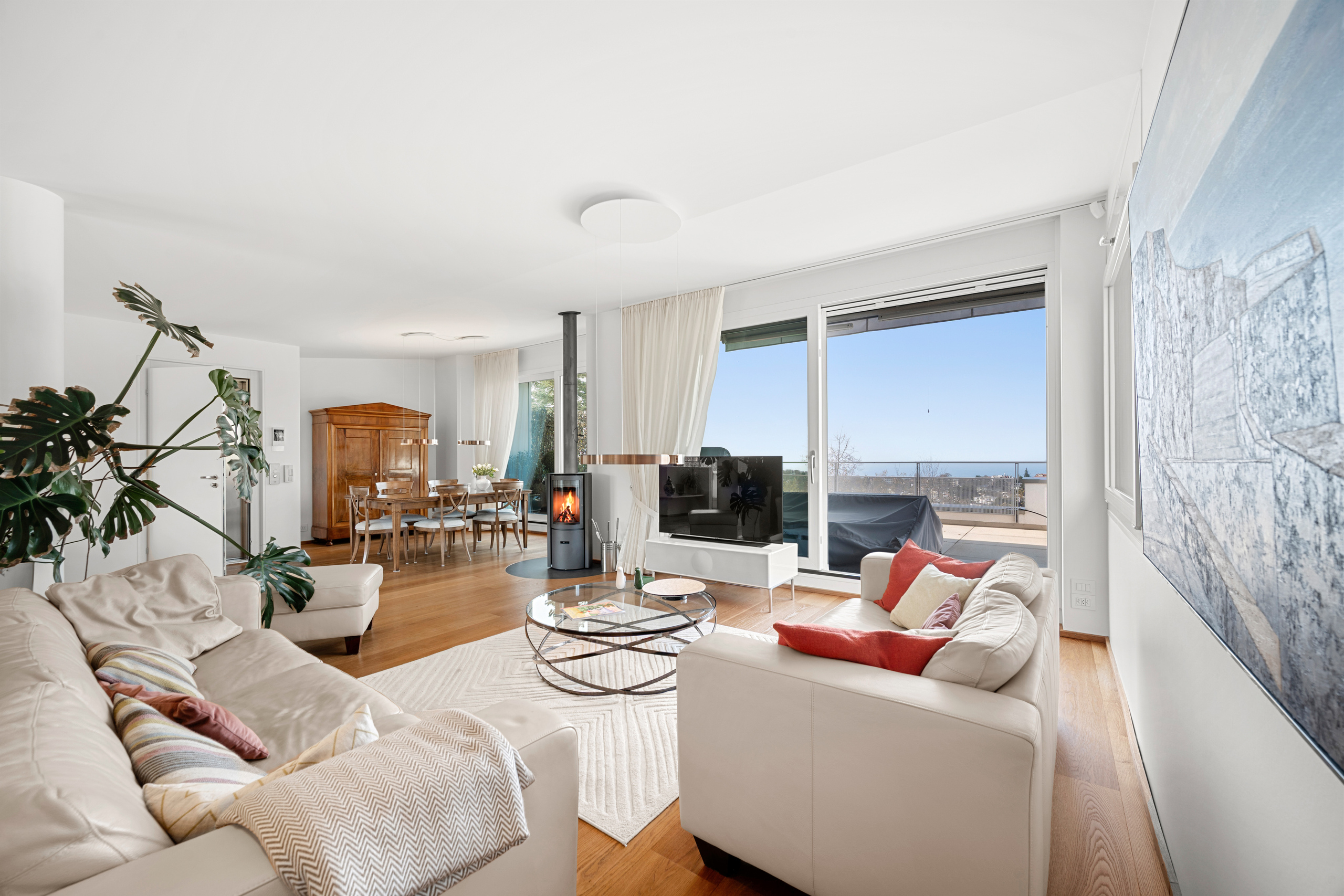 Ce superbe appartement en duplex contemporain, construit en 2011 et régulièrement entretenu, se situe dans le quartier très recherché de Chailly, à proximité immédiate de toutes les commodités, des transports et des activités. Implanté au sein d’une PPE moderne composée de seulement huit appartements, répartis en deux bâtiments de quatre logements, il offre des prestations haut de gamme dans un environnement à la fois calme et verdoyant. Les volumes y sont généreux et la lumière omniprésente grâce à une distribution intérieure particulièrement soignée, où chaque pièce profite d’une belle vue sur la nature, le lac et les Alpes. Ce bien séduit également par son esprit « town house », avec une entrée indépendante depuis l’extérieur, ainsi que par son ascenseur privatif reliant directement le garage à chacun des niveaux de l’appartement. D’une surface de 200 m² habitables (240 m² pondérés), il s’organise sur deux niveaux. Le rez