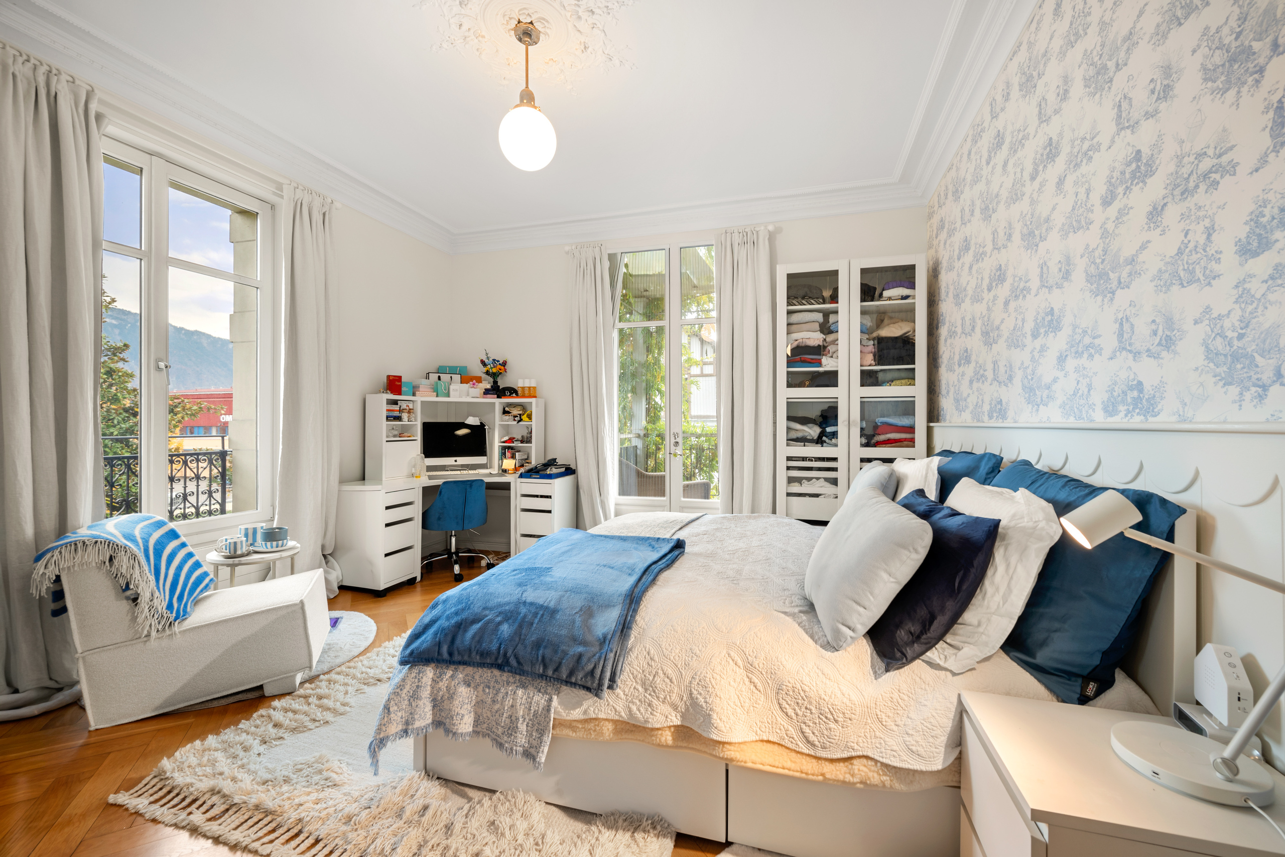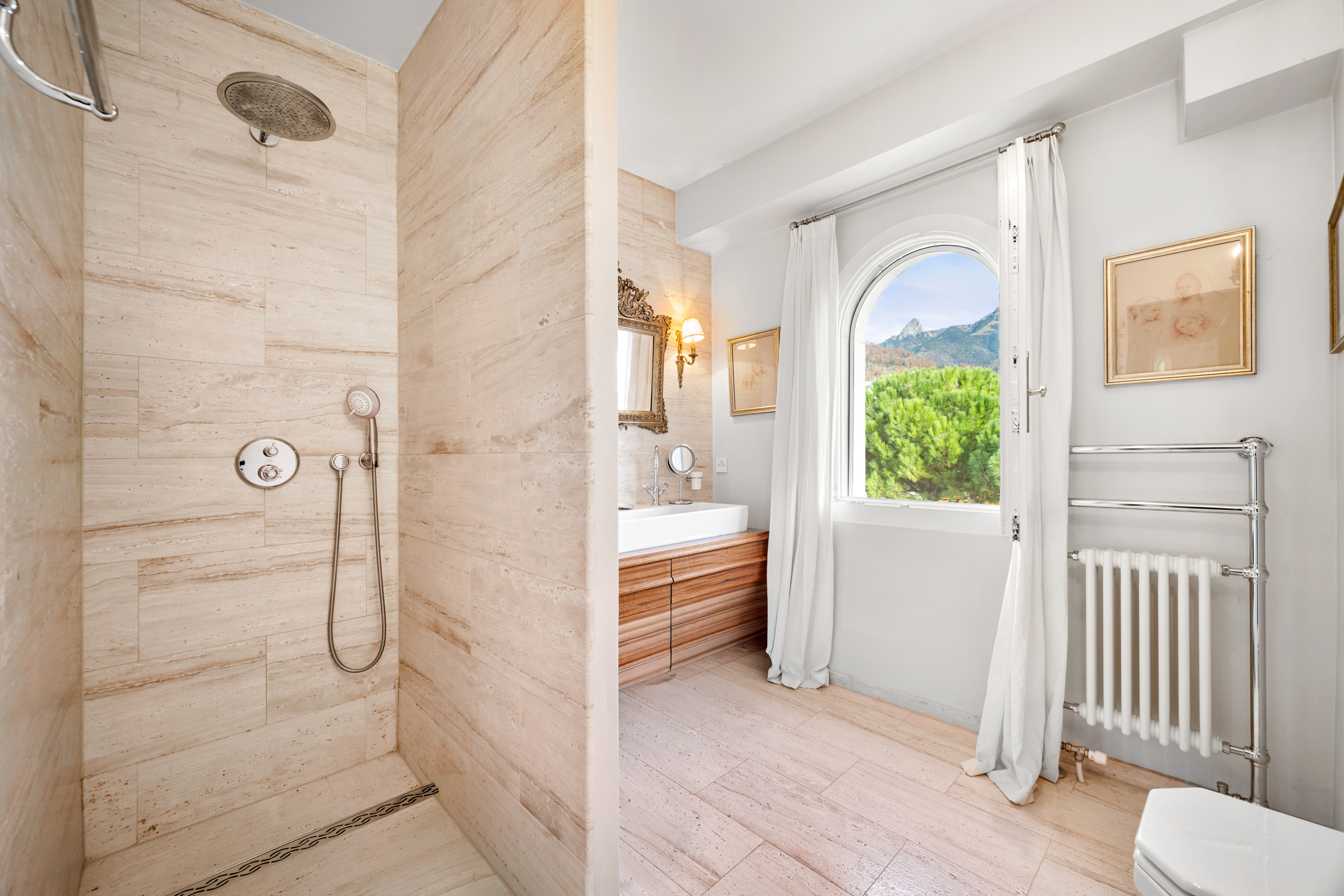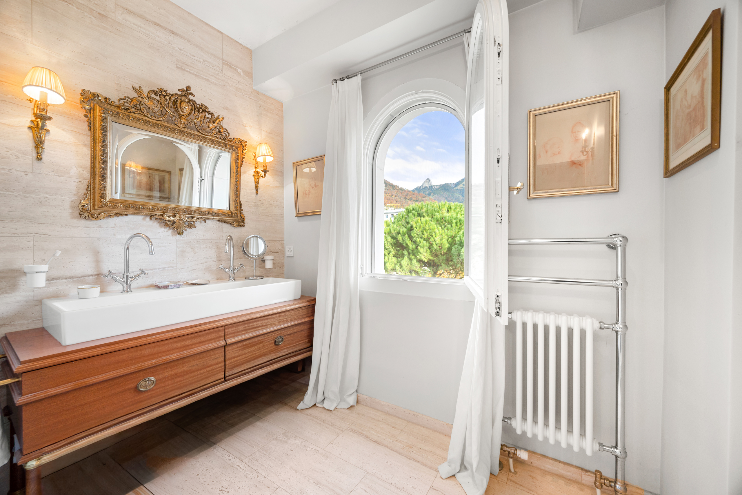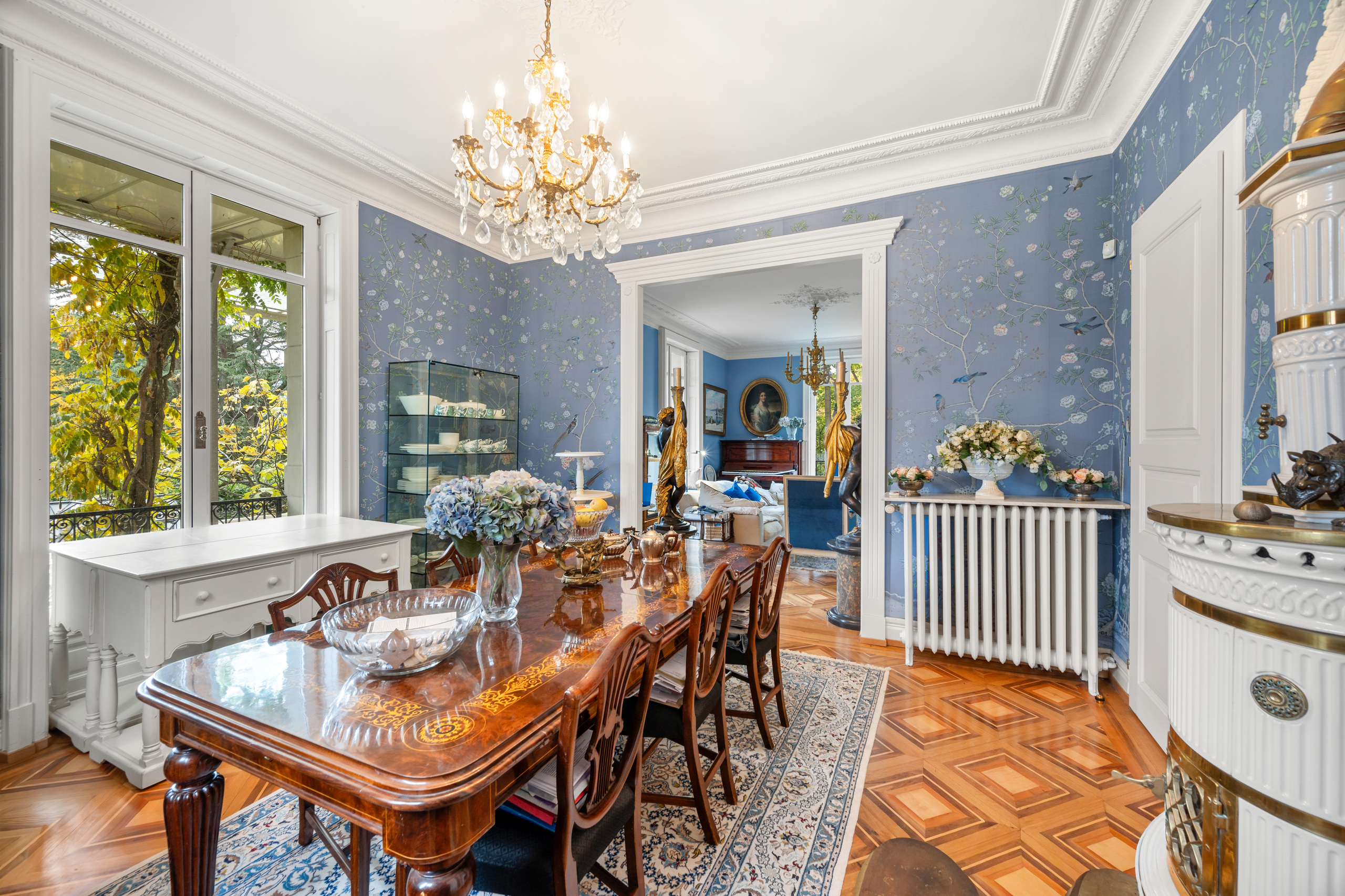 Cette superbe propriété du 19ème siècle allie parfaitement élégance et confort dans un cadre absolument idyllique à seulement quelques pas du lac et tout proche du centre ville. Proche des écoles internationales, des loisirs et des transports, elle convient parfaitement à une famille. Entièrement rénovée en 2011 avec goût, raffinement, des matériaux nobles et de très grandes qualités, elle a su garder tout son charme avec ses boiseries, ses cheminées et moulures anciennes tout en offrant un cadre de vie confortable et moderne. Les nombreuses terrasses dont certaines offrent une belle vue sur le lac, la véranda d’été, le jardin agrémenté de fontaines, les splendides arbres aux différentes essences agrémentent l’ensemble et mettent en avant cette magnifique bâtisse. Construite sur trois niveaux avec 400 m2 habitable, la propriété propose de belles pièces de réception ouvrant sur une terrasse couverte orientée plein sud, une cuisine entièrement équipée
