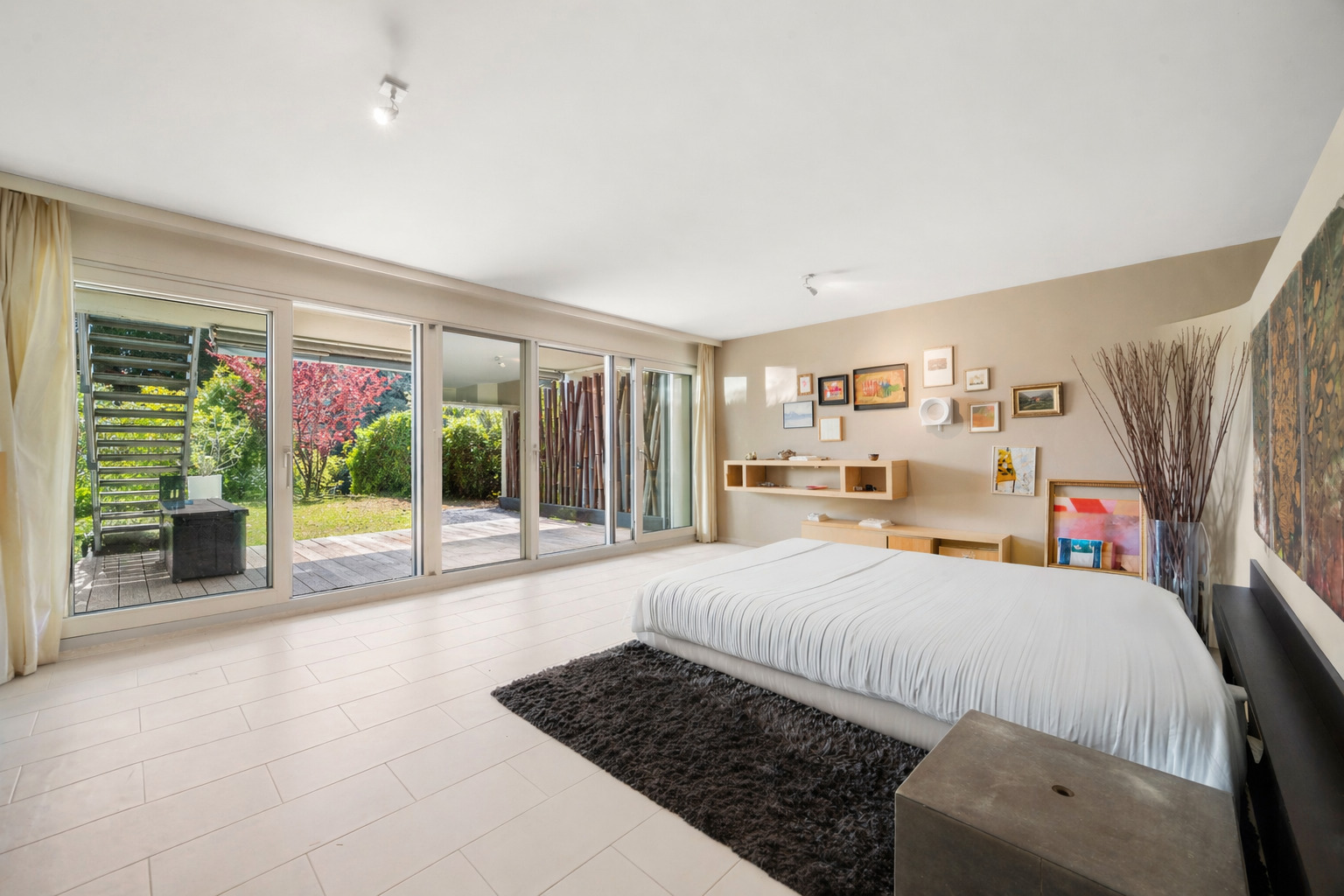 The sleeping area is located on the garden level and comprises two bedrooms, each with its own en-suite bathroom. The particularly generous master suite has its own private terrace.