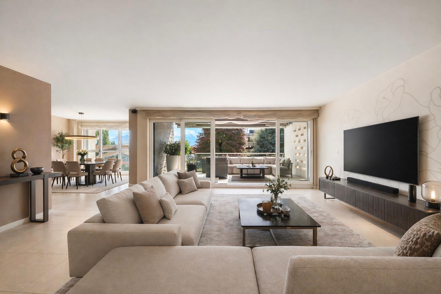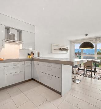 This beautiful turnkey duplex enjoys a privileged address in the heart of the highly sought-after commune of Pully. It's within walking distance of the charming center and all its amenities, the Pully-Sud train station, as well as the shores of the lake and the quays of Ouchy. The neighborhood is also appreciated for its immediate proximity to Lausanne and its excellent public transport network. The renowned Collège Champittet is just a 5-minute walk away. The 184 sqm apartment boasts contemporary, open and uncluttered architecture, with large windows and views of the Alps. Pleasant outdoor spaces extend this living space, with 32,5 sqm of balcony and terrace and a private garden of 110 sqm. The living space unfolds like a completely open plateau, offering fluid circulation between the different areas. It features a spacious living room extending onto the balcony, a fully-equipped kitchen with dining area, and a dining