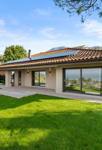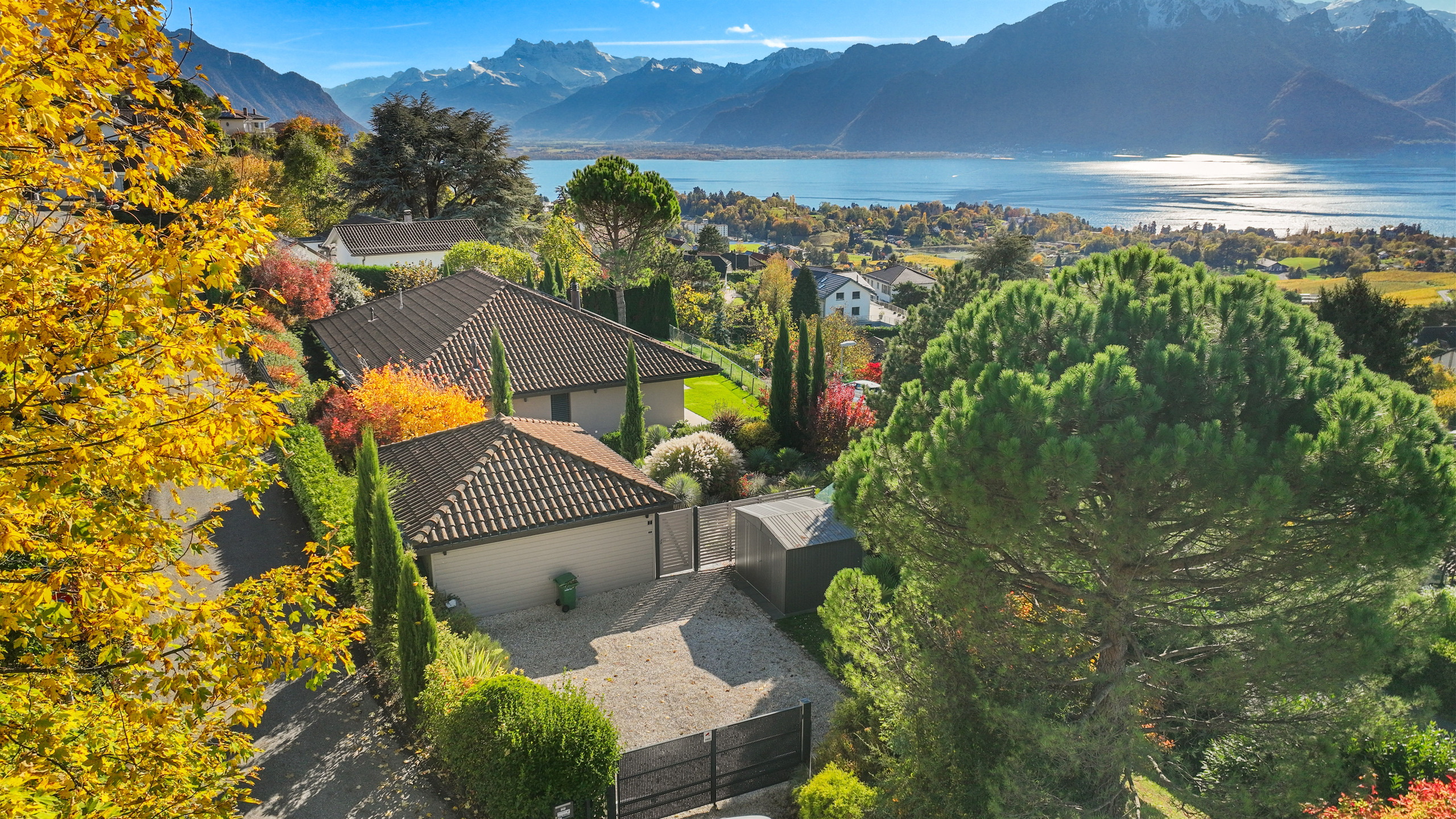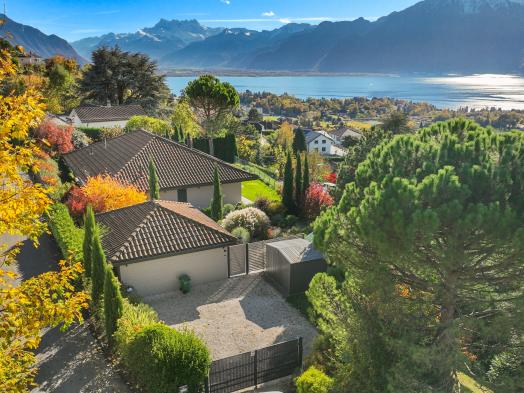 Located in a sought-after residential area, just a few minutes from the centre of the village of Blonay, this magnificent property offers breathtaking views of Lake Geneva and the Alps. Tastefully renovated in stages in 2018, 2022 and 2024, this house has been transformed using the highest quality materials. Built on one level, it charms with its generous proportions, high ceilings and exceptional brightness. It perfectly combines modernity, comfort and a warm atmosphere. Built on a 1,526 sqm plot, the property benefits from a superb landscaped garden in a Mediterranean style, designed with great care. Several terraces invite you to relax in complete privacy, in a spectacular setting. The main house offers 140 sqm of living space. The living area consists of a large lounge with fireplace, a dining room opening onto the garden and terrace, and a modern, fully equipped kitchen, complemented by a pantry and