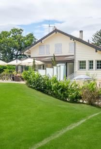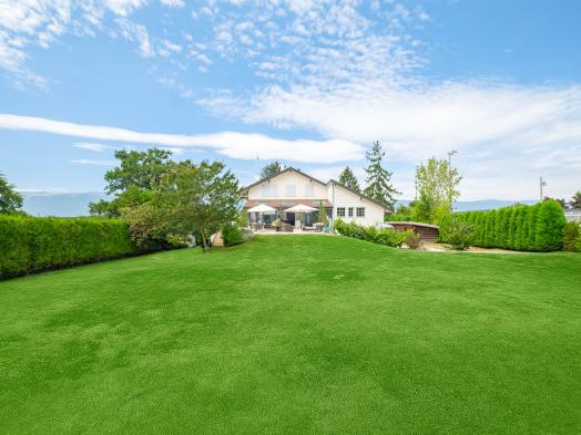 This beautiful villa is located in a quiet residential area, at the end of a cul-de-sac, in the heart of the commune of Grand-Saconnex. It is ideally located close to the airport, motorways and Geneva city centre. Built in 1955 and renovated in 2012, this 400 sqm property is now divided into several flats, with the main house, 2 flats and a studio. The house is arranged over 3 levels and features light-filled rooms, spacious rooms and a very large garden. The first level houses the entrance hall, a laundry room, a workshop, a converted garage, an office or fitness room and a bedroom with en suite shower room. The second level houses the living areas, with a beautiful lounge with fireplace, a fitted and equipped kitchen and the dining room. The third level houses the sleeping area with 4 bedrooms, including a master