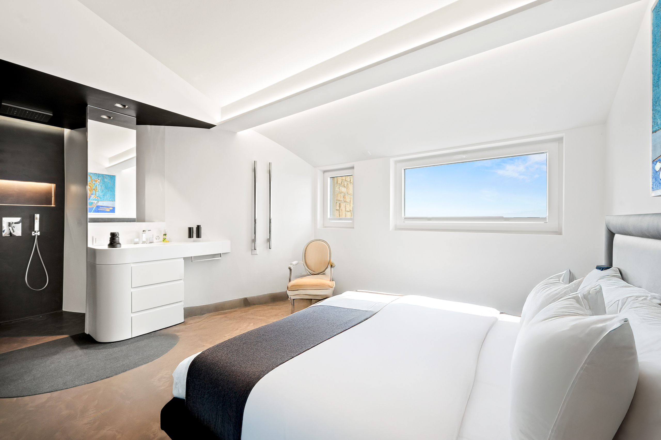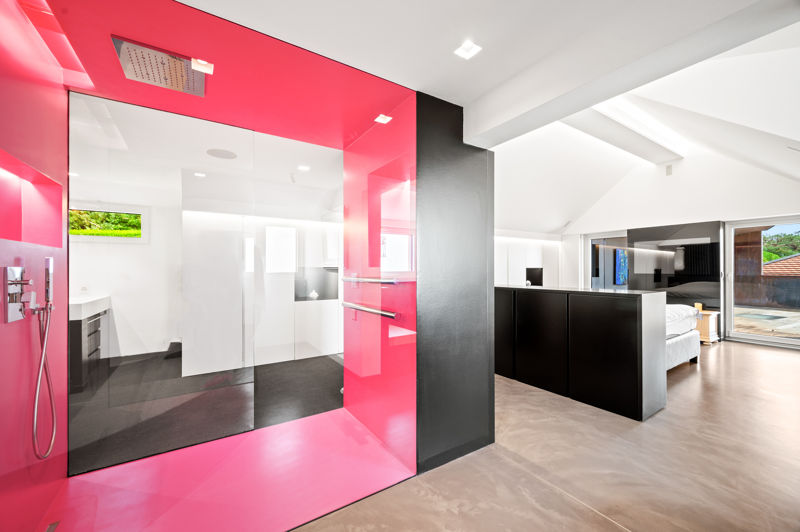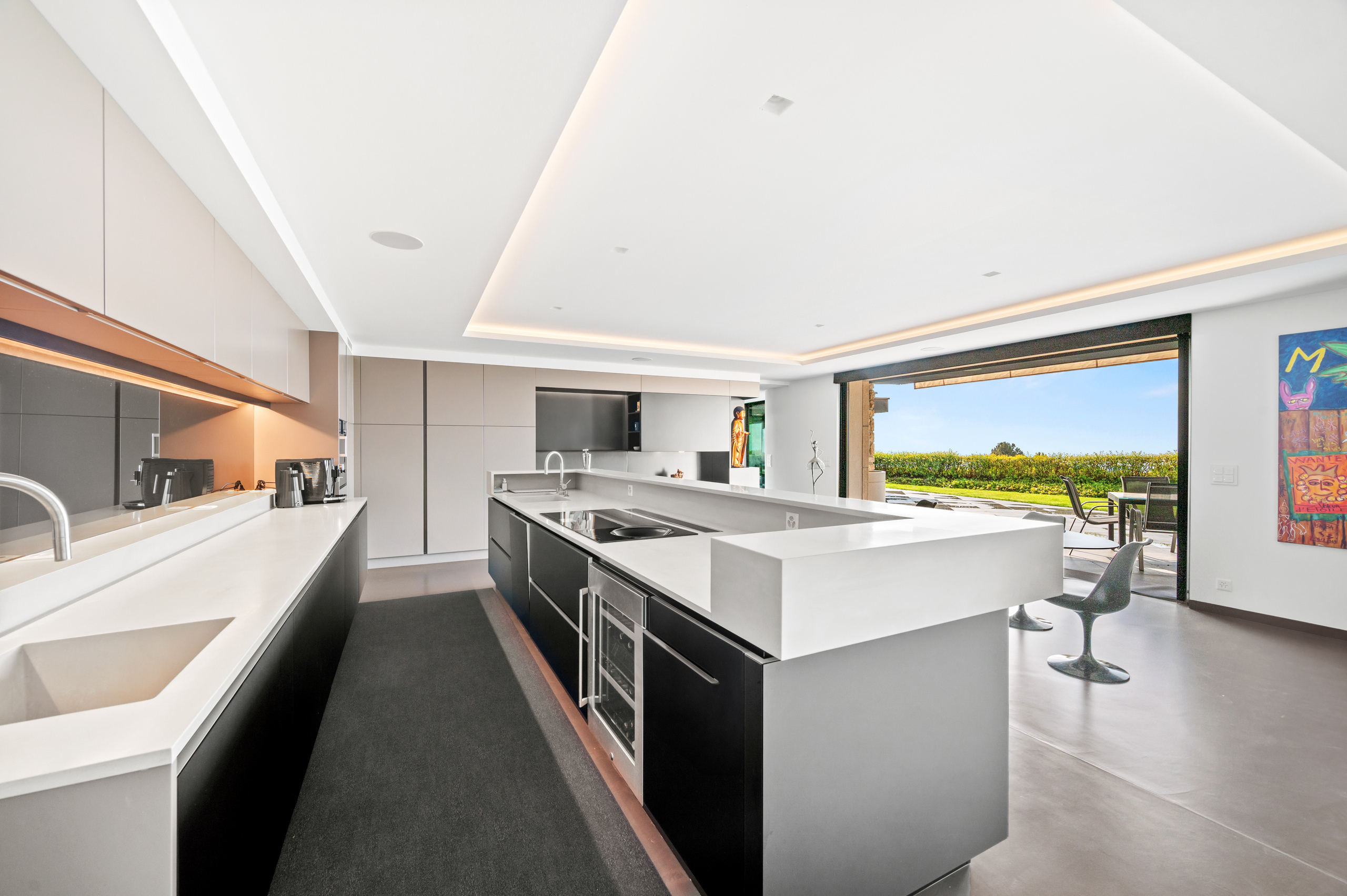 The basement is decidedly exclusive: a glass-fronted, air-conditioned wine cellar, secure bunker, home cinema, cellar and technical rooms are laid out in a practical and refined manner.