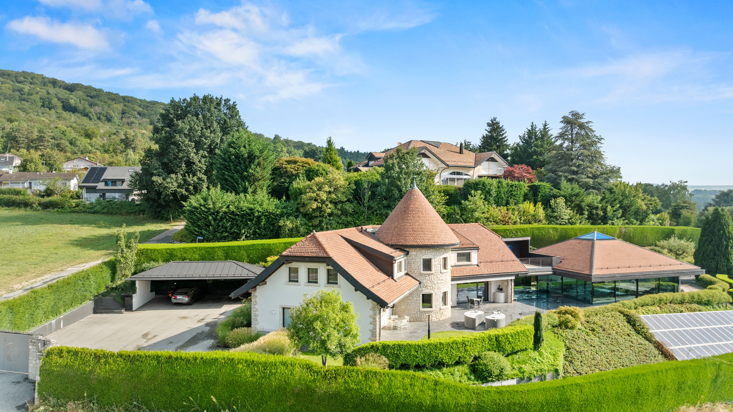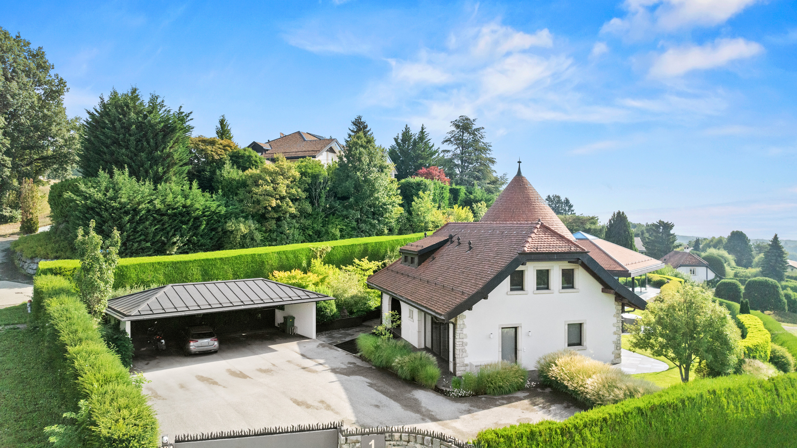 Finally, a carport for four cars and several outdoor parking spaces complete this rare property, designed down to the smallest detail to combine comfort, privacy and prestige.