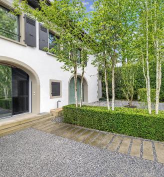 Située dans la commune prisée de Vandoeuvres, sur la rive gauche, cette remarquable propriété du XIXᵉ siècle s’inscrit au cœur d’un environnement résidentiel particulièrement recherché. Édifiée sur une parcelle de plus de 3’100 m², elle bénéficie d’un cadre verdoyant, parfaitement préservé. Sa réinterprétation contemporaine met en valeur les volumes, la luminosité et les lignes architecturales, tout en respectant l’âme et le caractère du bâti historique. Alliant avec élégance le charme de l’ancien et le confort moderne, la demeure a fait l’objet d’une transformation complète, puis d’une rénovation approfondie, réalisée avec des matériaux haut de gamme et des finitions soignées. La propriété offre environ 730 m² de surface habitable et 850 m² utiles, répartis sur trois niveaux, complétés par un sous-sol. Le rez-de-chaussée s’organise autour d’un généreux hall d’entrée sublimé par un escalier dessiné par l’architecte italien de renom Pierre Lissoni. Les pièces de réception séduisent par leurs volumes généreux et la présence de la piscine intérieure, intégrée harmonieusement à l’architecture de la maison. Une salle à manger avec cheminée ainsi qu’une grande cuisine entièrement équipée avec espace repas et cellier composent un ensemble convivial et harmonieux. La cuisine s’ouvre