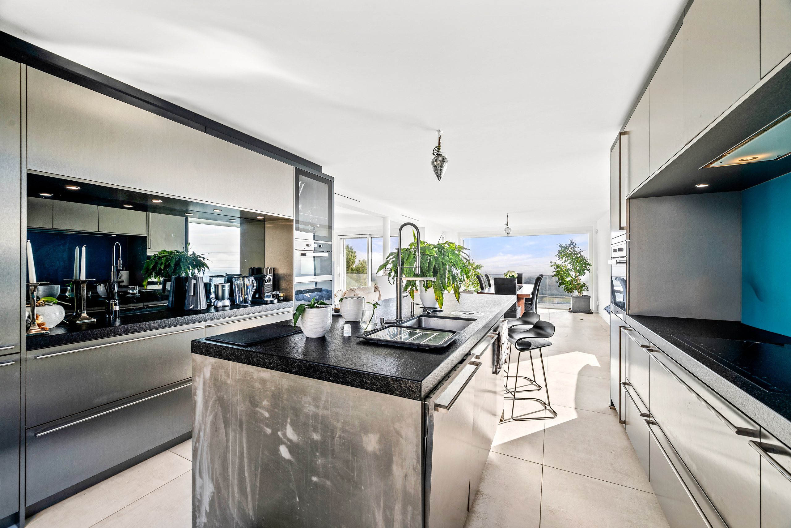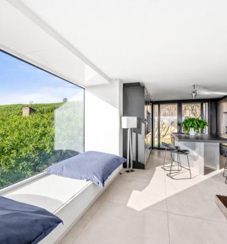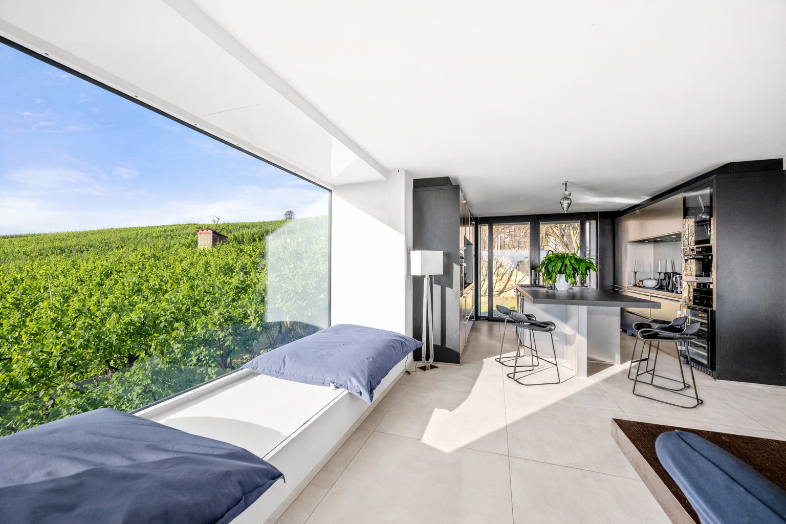 Les espaces de vie, modernes et lumineux, sont orientés vers les vignes et la vue panoramique, créant un cadre de vie exceptionnel, alliant sérénité et élégance.