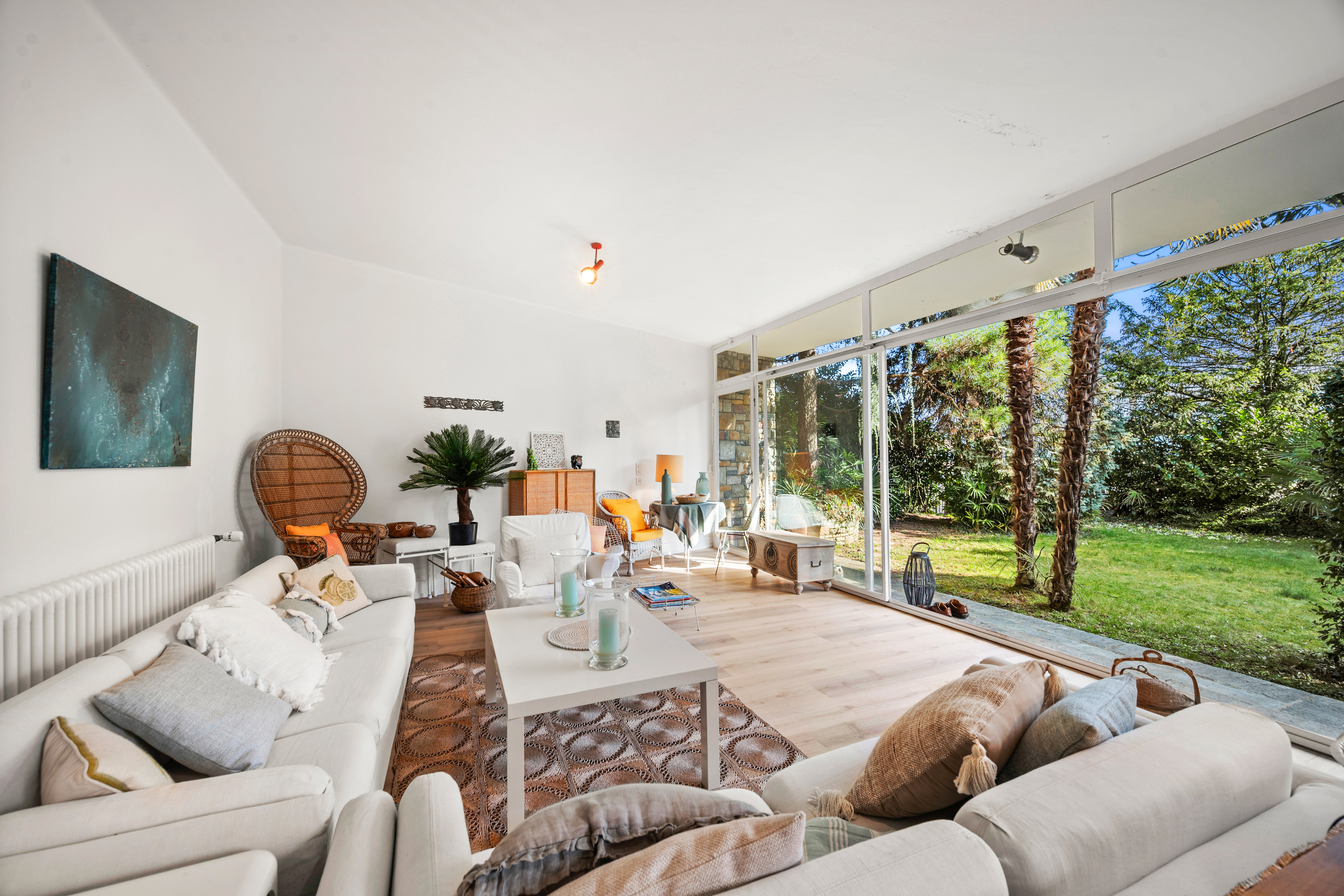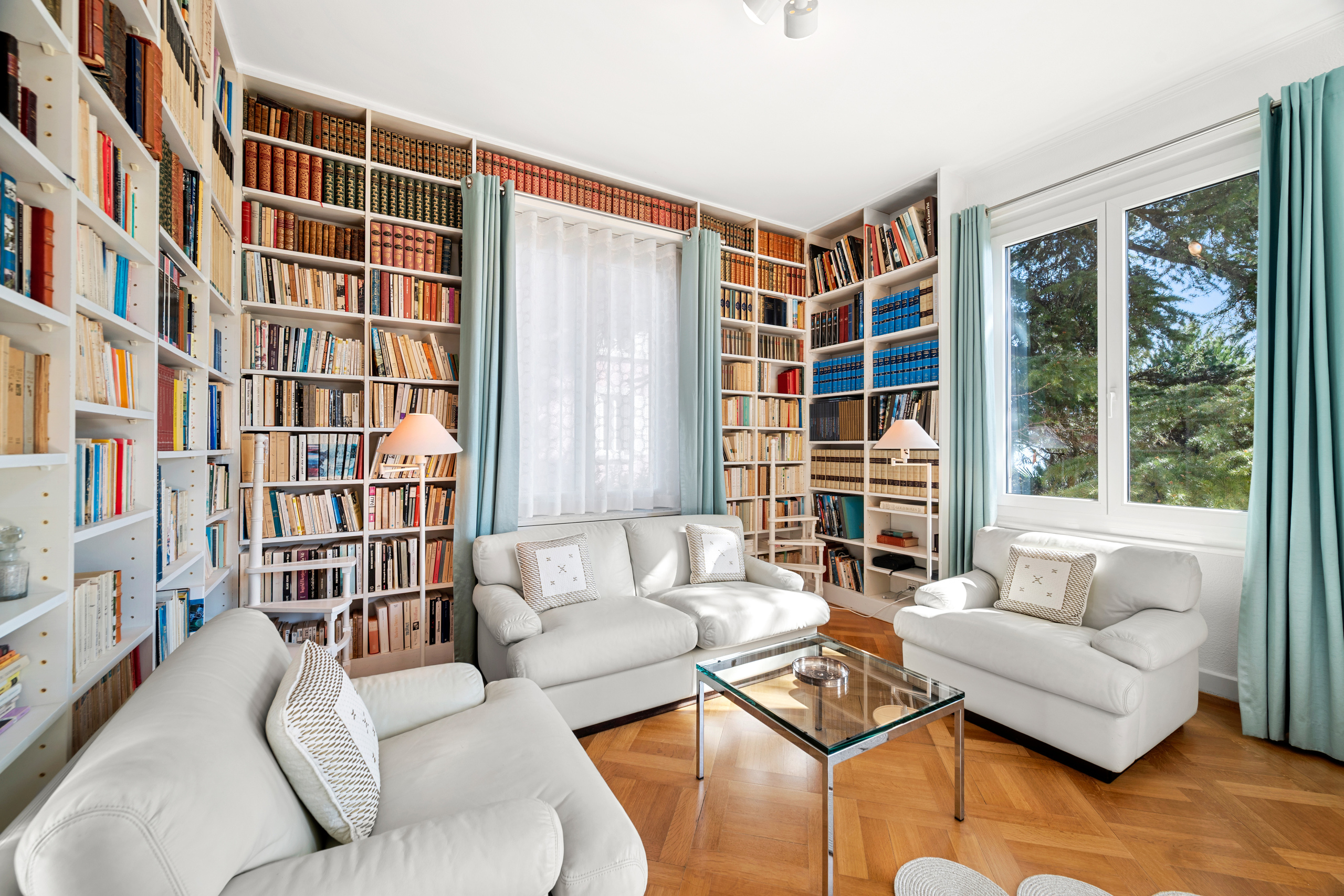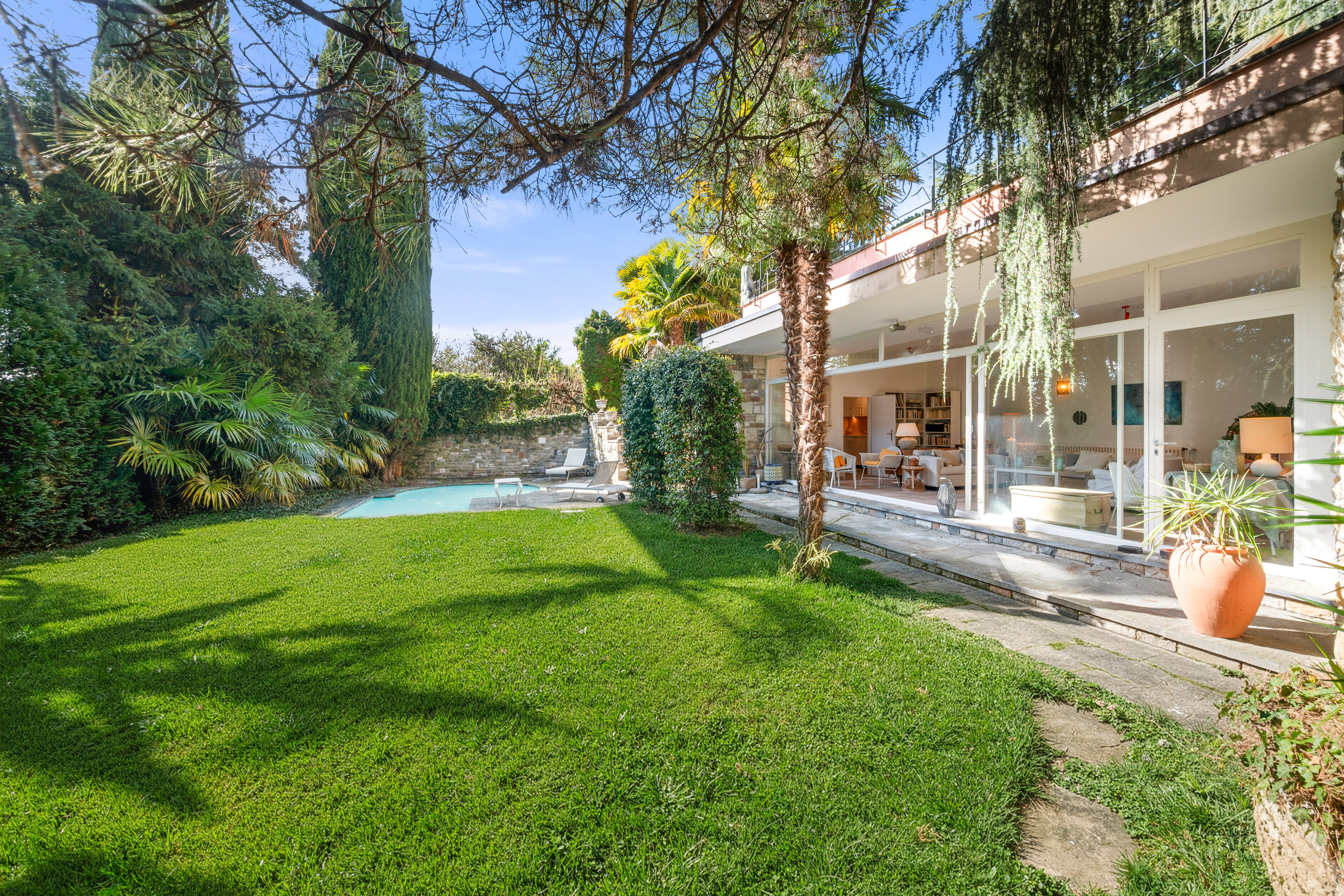 Cette ravissante propriété, érigée en 1945 par des architectes de renom pour le compte d’un photographe célèbre, est nichée dans un véritable écrin de verdure au cœur d’un quartier très privatif de Pully. Implantée sur une parcelle de plus de 1’500 m², densément arborée de pins et de cyprès, la propriété dégage une atmosphère résolument méditerranéenne et procure un sentiment de bien-être absolu. Le jardin paysager, aménagé sur deux niveaux, est agrémenté d’un bassin et d’une petite piscine extérieure, offrant un cadre de vie rare et enchanteur. Une charmante annexe indépendante, construite en 1962, complète l’ensemble. Elle comprend un vaste salon, un WC visiteurs ainsi qu’une kitchenette, et bénéficie d’un accès direct au jardin. La villa s’inscrit dans un ensemble architectural protégé composé de six maisons individuelles du quartier des Combes. Elle se distingue par son style unique, son implantation au cœur d’un jardin d’exception et sa proximité immédiate des commodités et des