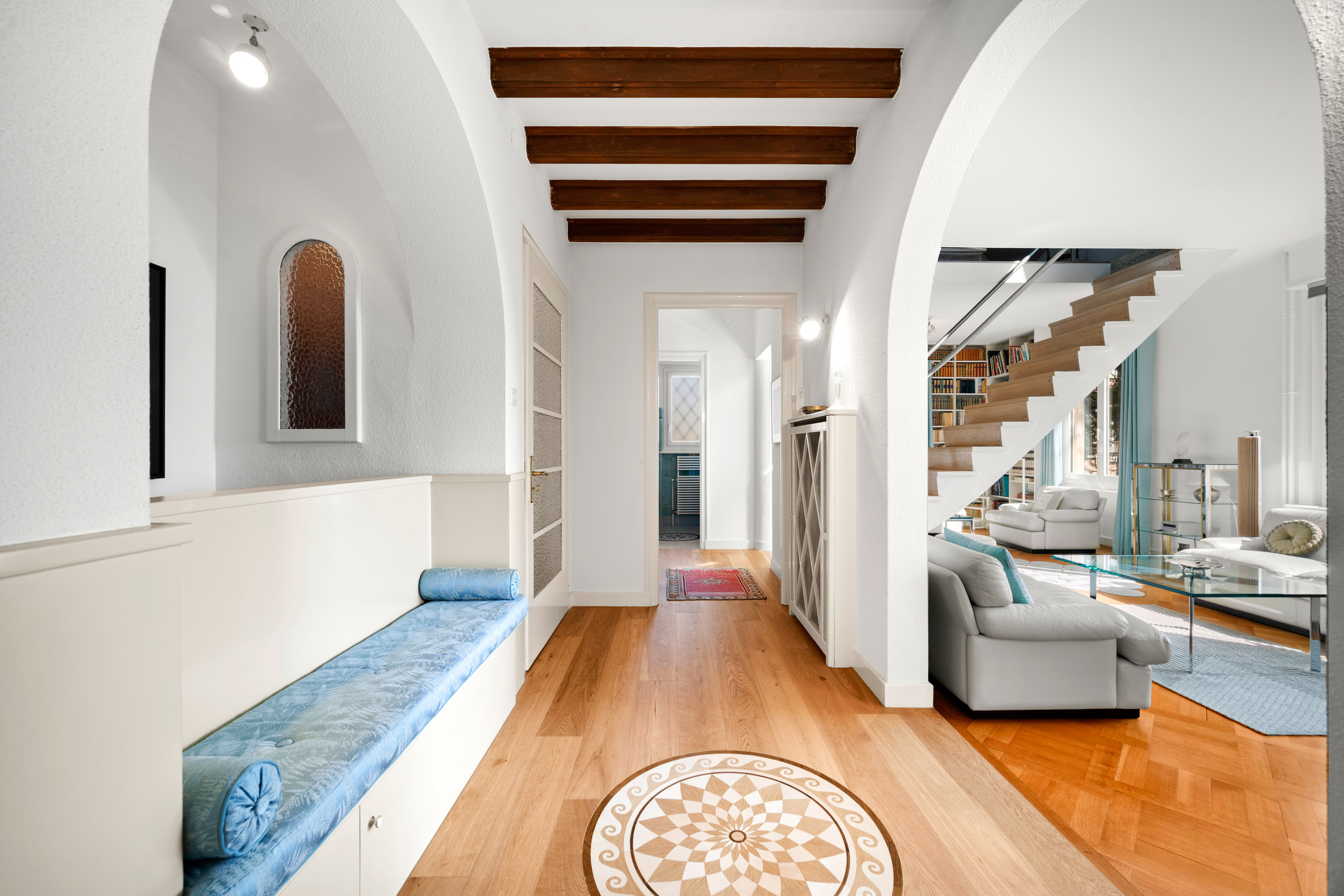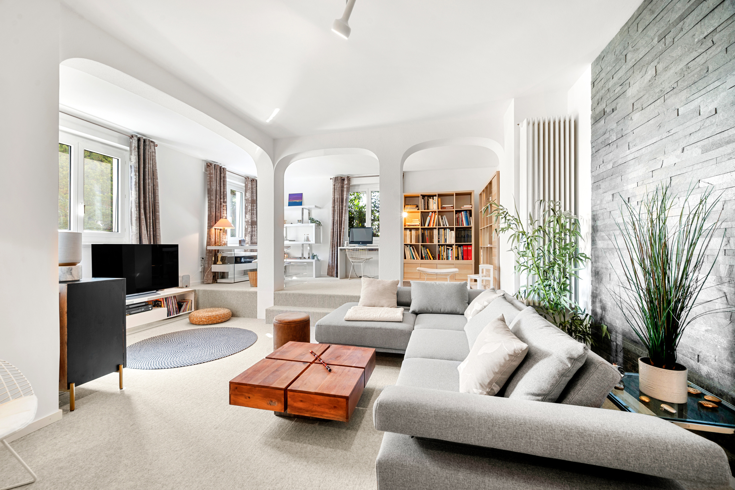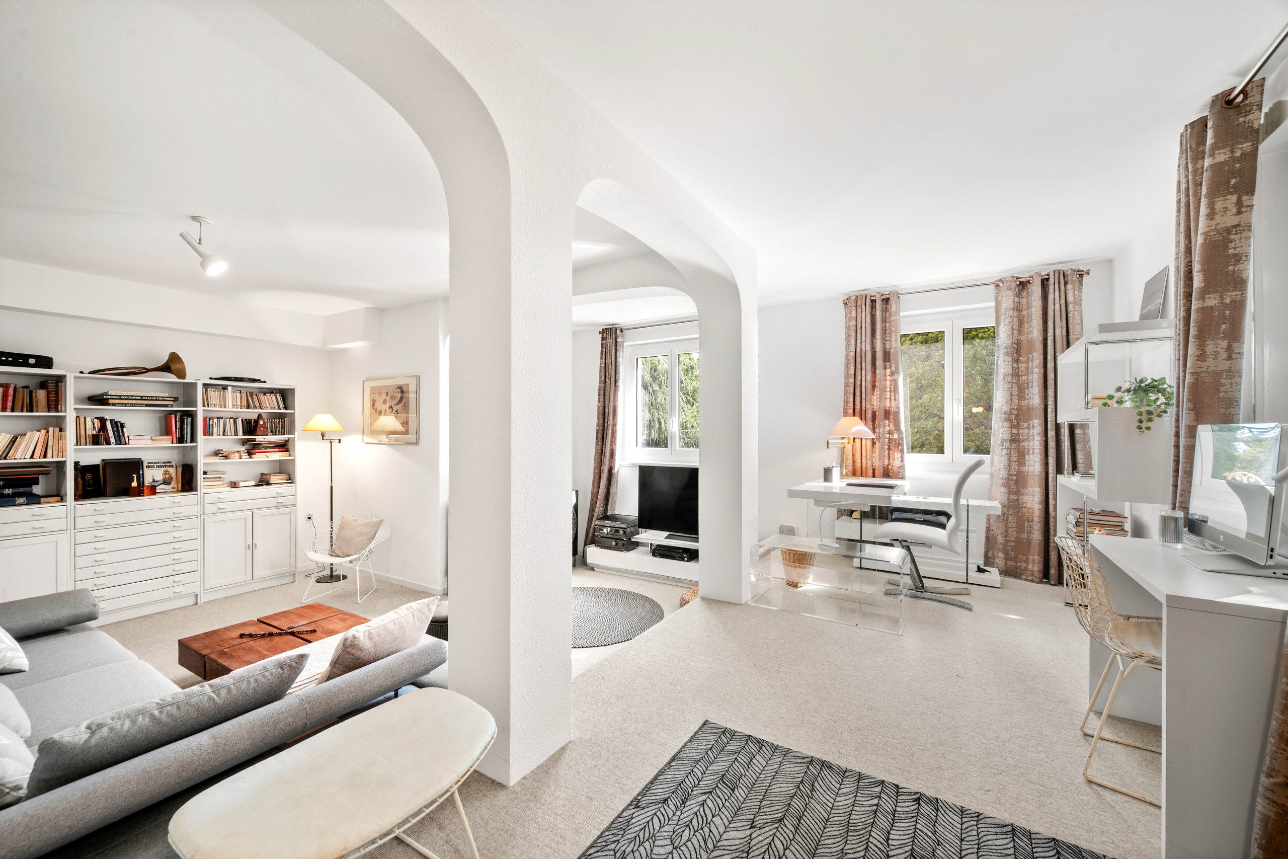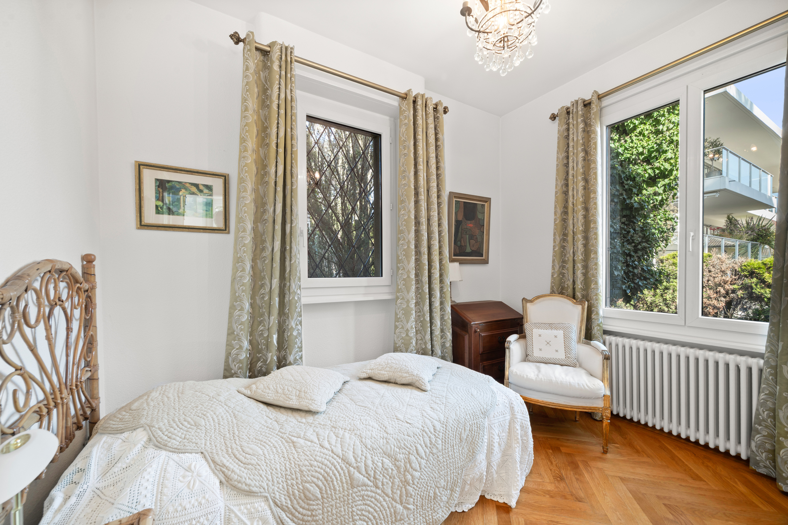 Cette ravissante propriété, érigée en 1945 par des architectes de renom pour le compte d’un photographe célèbre, est nichée dans un véritable écrin de verdure au cœur d’un quartier très privatif de Pully. Implantée sur une parcelle de plus de 1’500 m², densément arborée de pins et de cyprès, la propriété dégage une atmosphère résolument méditerranéenne et procure un sentiment de bien-être absolu. Le jardin paysager, aménagé sur deux niveaux, est agrémenté d’un bassin et d’une petite piscine extérieure, offrant un cadre de vie rare et enchanteur. Une charmante annexe indépendante, construite en 1962, complète l’ensemble. Elle comprend un vaste salon, un WC visiteurs ainsi qu’une kitchenette, et bénéficie d’un accès direct au jardin. La villa s’inscrit dans un ensemble architectural protégé composé de six maisons individuelles du quartier des Combes. Elle se distingue par son style unique, son implantation au cœur d’un jardin d’exception et sa proximité immédiate des commodités et des