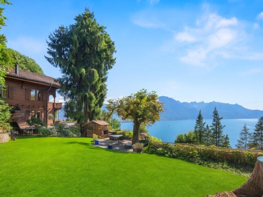 Construite en 1911, cette magnifique propriété a su conserver toute son authenticité et son charme d’époque. Située sur les hauteurs de Montreux, elle bénéficie d’une vue imprenable sur le lac Léman et les Alpes, tout en étant à proximité immédiate du centre-ville, des commerces et des transports. Implantée sur une belle parcelle plate et arborée de 1'883 m², bordée par une lisière de forêt, la maison offre un cadre de vie paisible et verdoyant. Plusieurs espaces extérieurs invitent à la détente, dont un coin barbecue et un petit chalet annexe idéal pour recevoir ou se ressourcer. D'une surface utile de 250 m² répartie sur quatre niveaux, les volumes intérieurs sont généreux et chaleureux, avec de belles hauteurs sous plafond, des parquets d’époque, une cheminée accueillante et une charmante véranda fermée faisant office de salle à manger. La cuisine entièrement équipée dispose d’un cellier avec accès direct à l’extérieur.