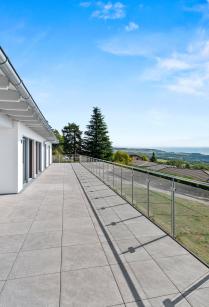 Édifiée sur une parcelle privative 1’816 m², la villa révèle un espace extérieur, composé d’une vaste terrasse de 200 m2 orientée sud-est jouissant d’une vue à couper le souffle.