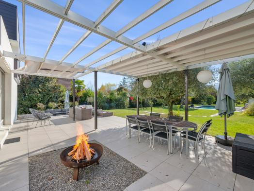 Le jardin paysager de plus de 2'200 m² constitue un véritable atout. Il accueille une superbe piscine, un pool house avec cuisine d’été et une terrasse plein sud, idéals pour profiter des beaux jours dans une atmosphère de détente et de convivialité.