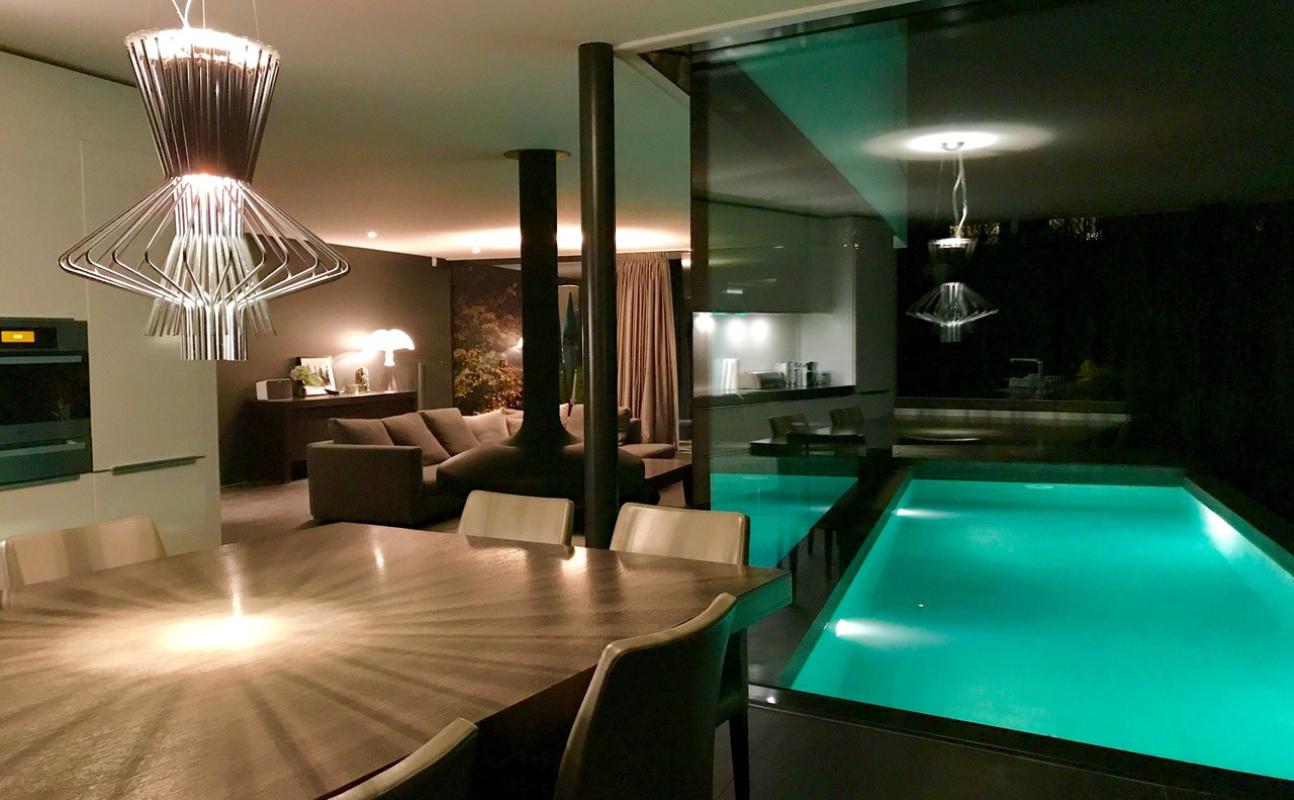 Villa contemporaine, piscine intérieure, vue lac, Cologny